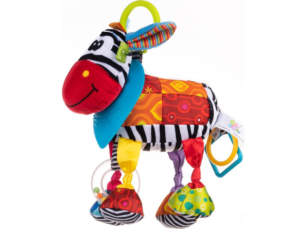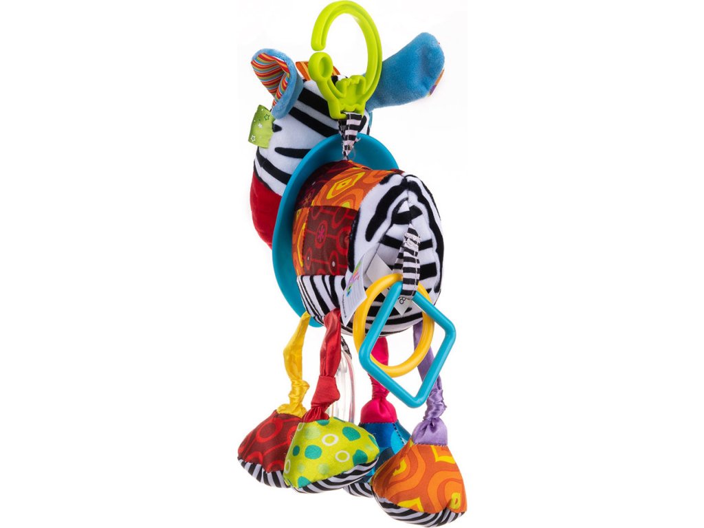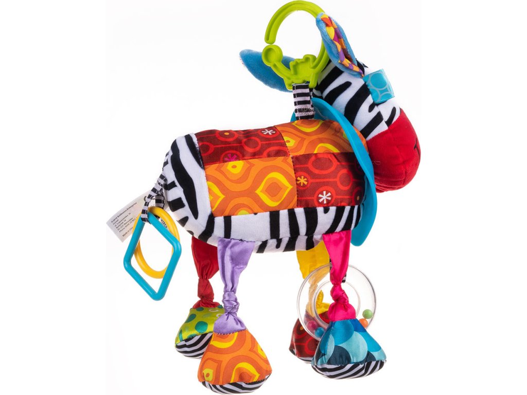 Detská závesná hračka.Tento veselý oslík miluje dobrodružstvo a jeho obľúbenou činnosťou je objavovanie sveta z úrovne kočíka. Aby sa nenudil, na každý výlet sa vydáva s hrkálkou a farebnými doplnkami pripevnenými na chvoste.