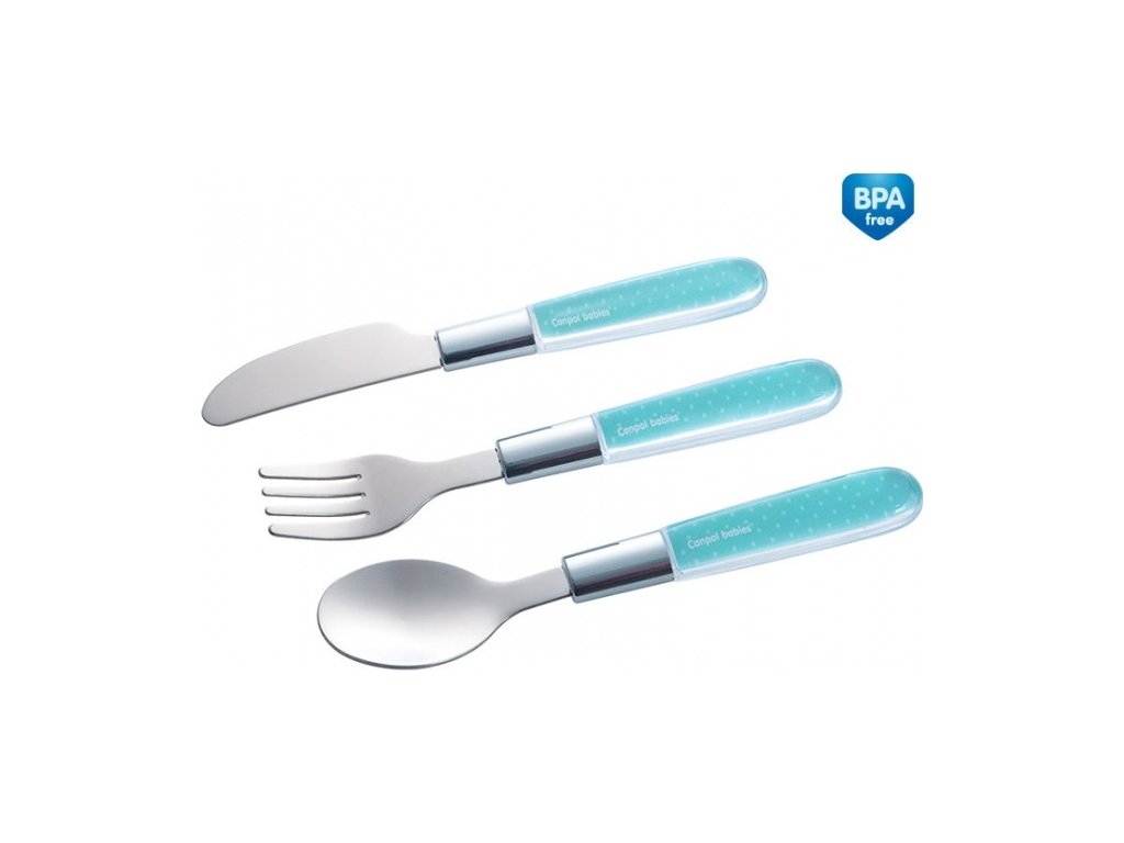 Príbor Canpol Babies z nehrdzavejúcej ocele.Príbor je špeciálne tvarovaný, má zaoblené konce, čo zabraňuje podráždeniu citlivých detských ďasien a je bezpečný.