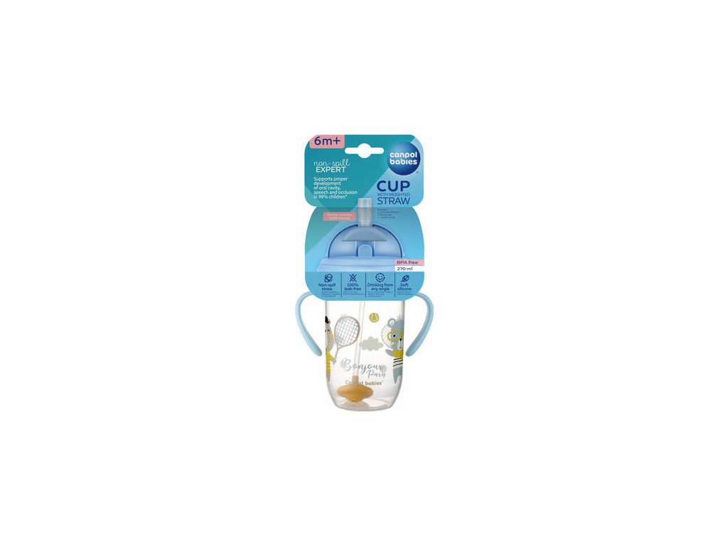 Canpol babies Nedávkovací pohár so slamkou a závažím Bonjour Paris - modrý, 270 ml