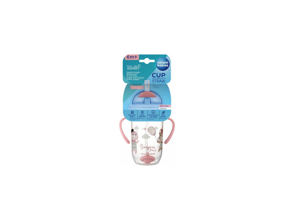 Canpol babies Nedávkovací pohár so slamkou a závažím Bonjour Paris - ružový, 270 ml