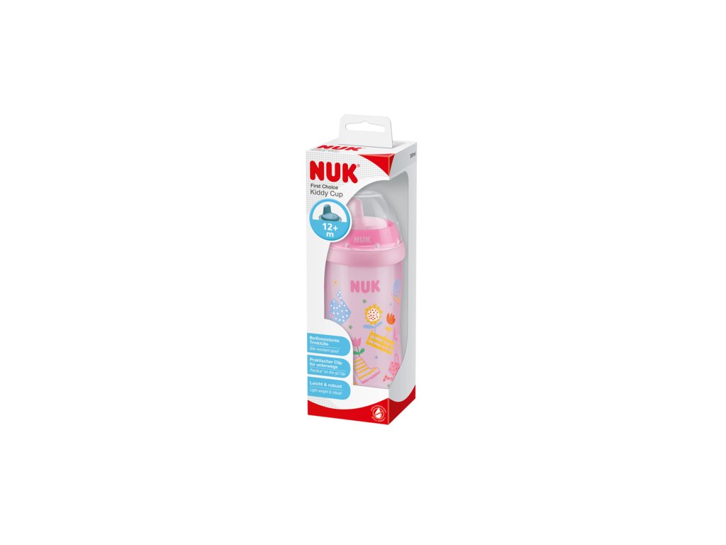 Detská fľaša NUK Kiddy Cup 300 ml. Magická fľaša je ideálna pre aktívne deti na šport a hry, z ktorej nevytečie ani kvapka. Má praktické viečko, ktoré udržiava náustok v čistote. Fľaša je extra ľahká, vyrobená z pevného a nerozbitného polypropylénu bez obsahu BPA. Vhodná pre deti od 12 mesiacov. Klinicky testované. Vlastnosti: Vhodné pre deti od 3 rokov: