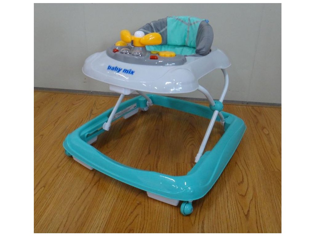 Multimediálne chodítko Baby Mix so silikónovými kolieskami. Chodítko je vybavené pohodlným ergonomicky tvarovaným sedadlom, ktoré zabezpečuje správne držanie chrbtice. Multimediálny panel obsahuje rôzne svetelné efekty, trúbiaci volant, ktorým možno otáčať, tlačidlá na prehrávanie melódií a dve svetlá. Krásna hračka chodítko očarí malých objaviteľov a umožní im hrať sa ešte dlhšie. Chodítko je vybavené špeciálnym systémom proti prevráteniu, ktorý zaistí pohodlie a bezpečnosť vášho dieťaťa.