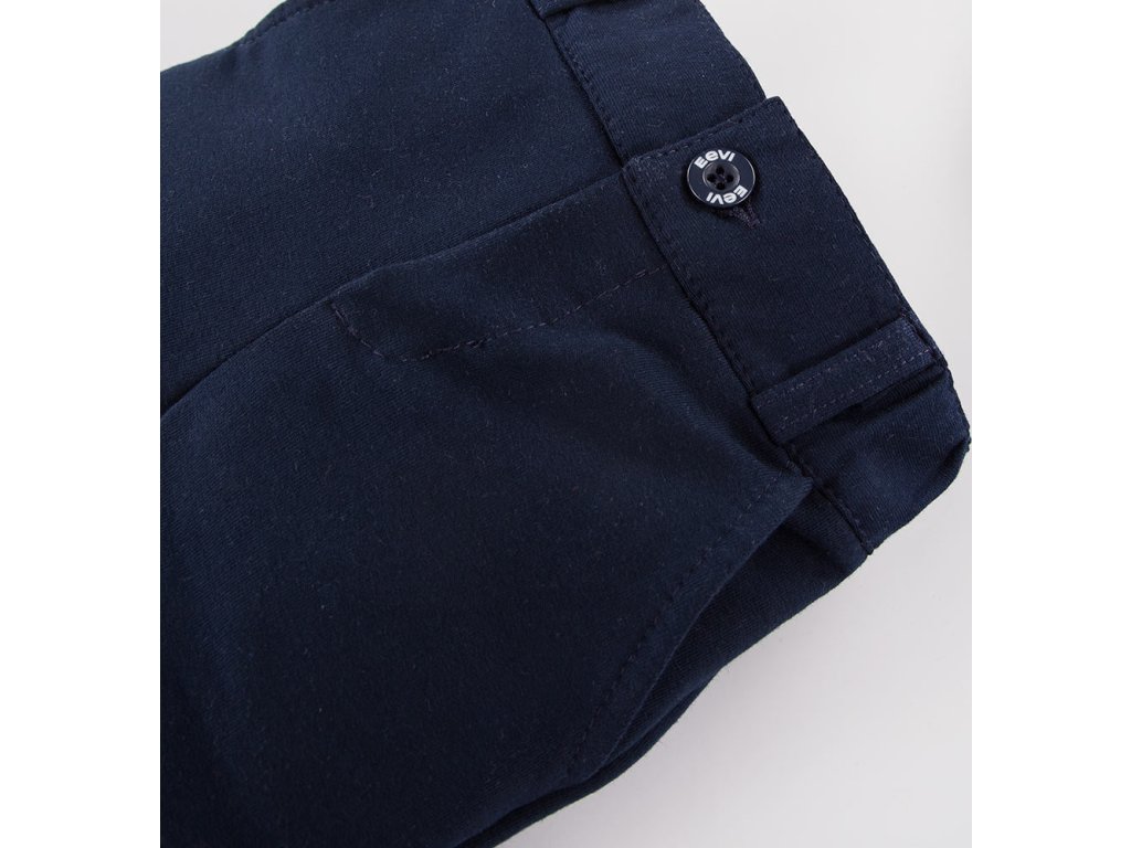 Chlapčenské nohavice z kolekcie "Ceremony" z mäkkého a na dotyk príjemného sivého a tmavomodrého džerseja. Zapínajú sa na gombík. Majú elastický pás, ktorý neškrtí detské bruško. Nohavice majú zapínanie na gumu. Vyrobené v Poľsku, certifikované ako "Bezpečné pre dieťa". 100 % bavlnaDodatočné parametre
