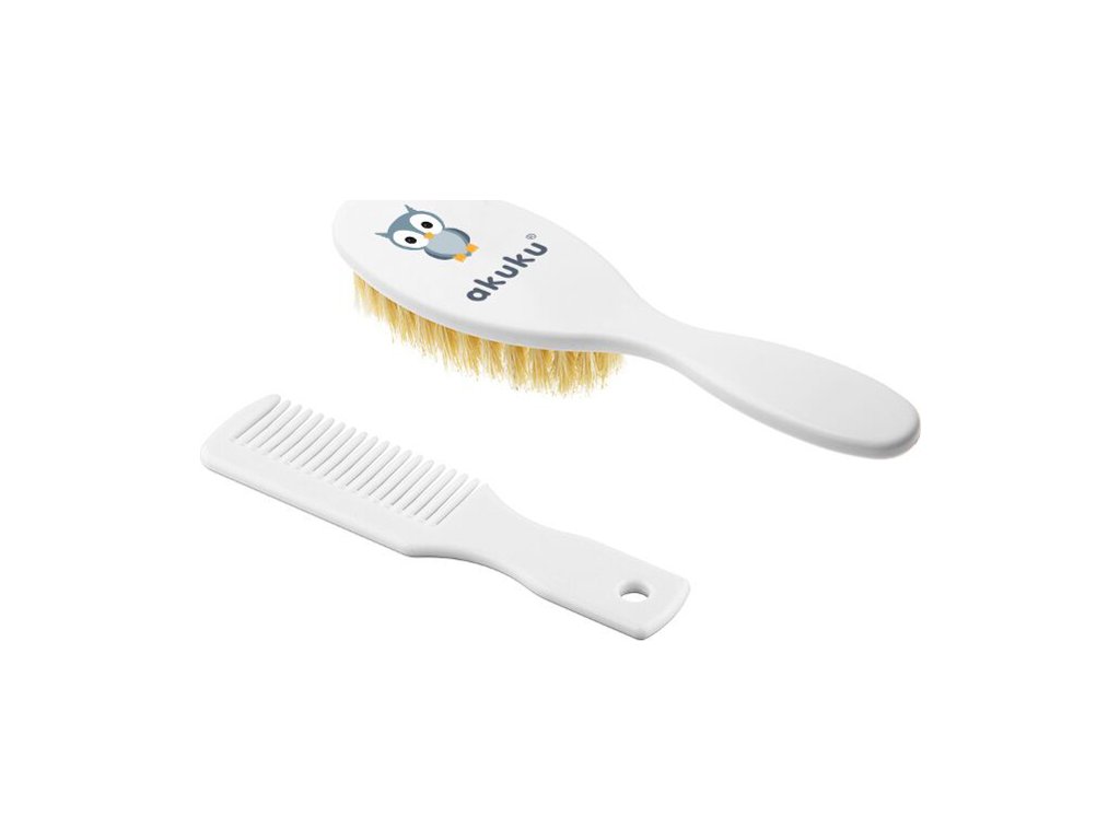 Kefa a hrebeň na prírodné vlasy Akuku. Vyrobené bez BPA. Rozmery: hrebeň: cca 11 cm, kefa: cca 15 cm. Vhodné pre deti od narodenia.Dodatočné parametre