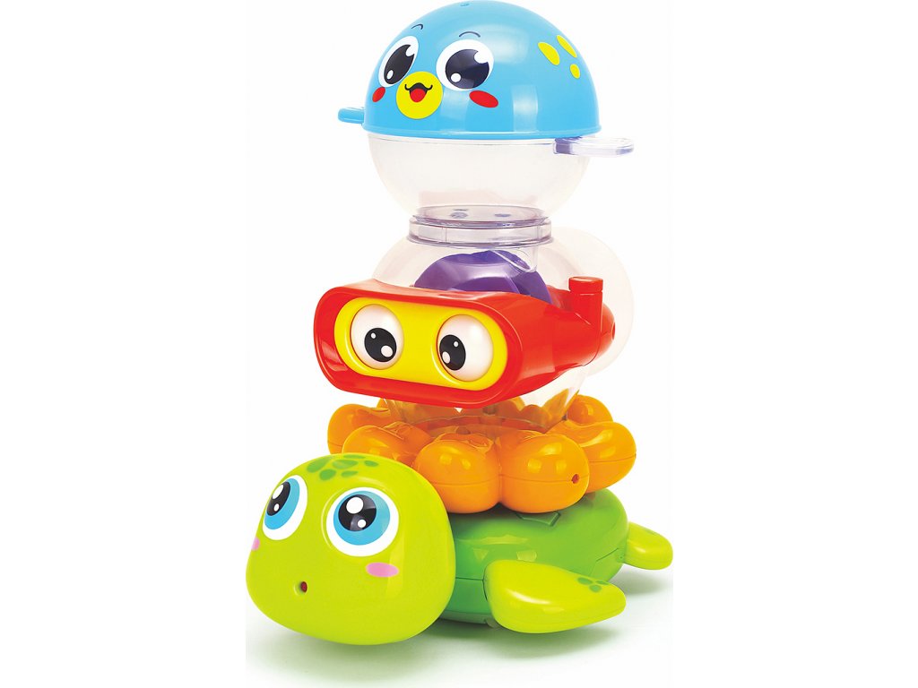 Skladá sa z troch zvieratiek; rybky - cedníka, chobotnice, ktorá hýbe očami, a chodiacej korytnačky, ktorá po stlačení strieka vodu.