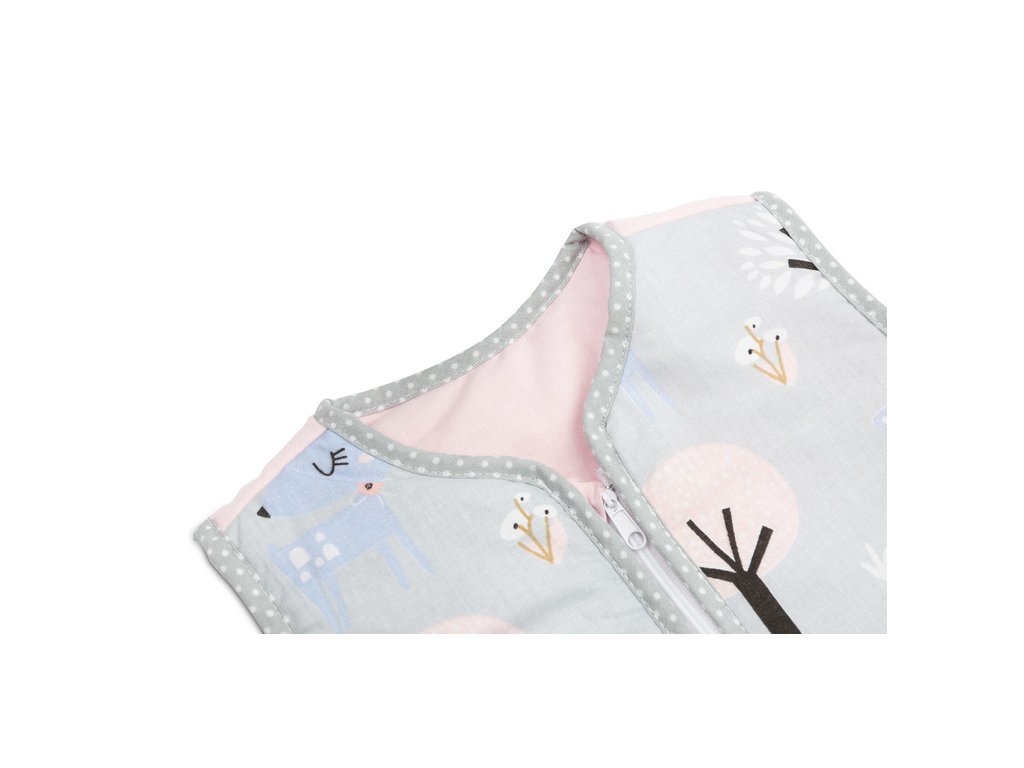 Spací vak veľkosti M udrží staršie deti (9-18 mesiacov) v teple a bezpečí. Je vyrobený z mäkkej bavlnenej výplne s lemom. Neobsahuje tvrdé prvky, ktoré by mohli podráždiť pokožku dieťaťa. Spací vak je vybavený dvojcestným zipsom, zaisteným pri krku, ktorý umožňuje výmenu plienky bez toho, aby bolo potrebné dieťa zo spacieho vaku vybrať. Hodí sa k ostatným výrobkom našej značky.
