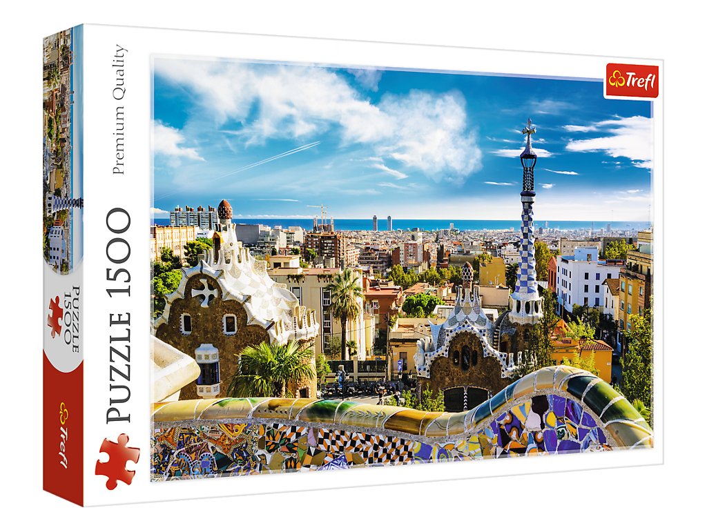 Puzzle 1500 dielikov s nádherným výhľadom na park Güell v Barcelone.