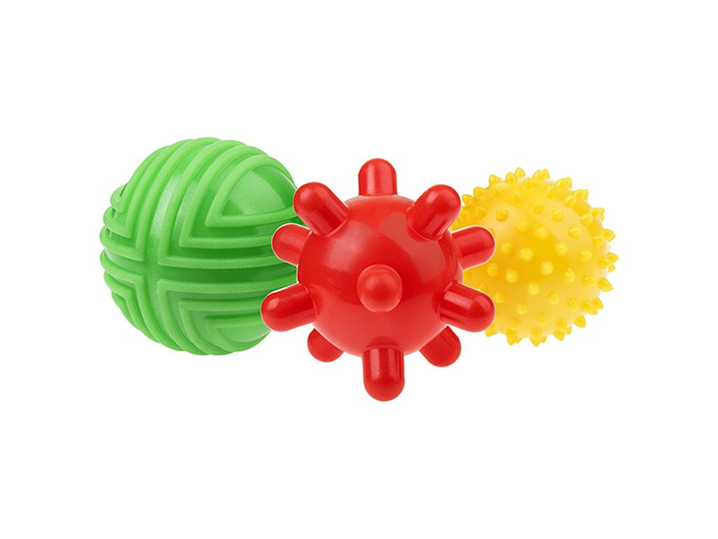 Loptičky sú ideálne na jemnú a príjemnú masáž. Držanie loptičky alebo šliapanie na ňu bosými nohami stimuluje rozvoj zmyslov dieťaťa a pomáha rozvíjať rovnováhu.