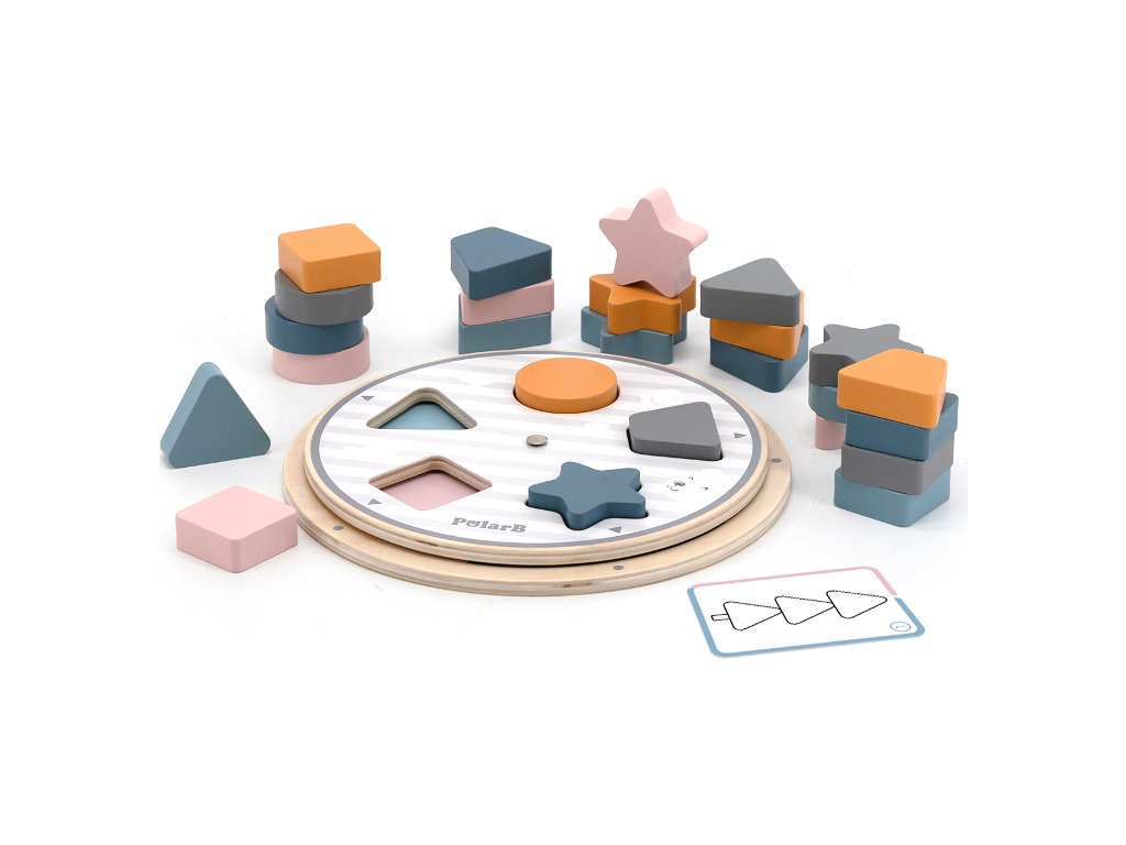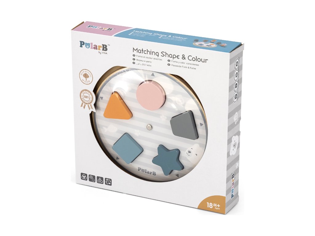 Predstavujeme drevenú hračku značky VIGA - triedič tvarov a farieb zo série POLAR BEAR. Bezpečná a premyslená hračka skvele podporuje dieťa v rozvoji koncentrácie, predstavivosti, logického myslenia, obratnosti a kognitívnych schopností. Hračka sa skladá z pohyblivého štítu, 25 kociek v rôznych kombináciách farieb a tvarov a obojstranných kartičiek s obrázkami. Bloky je možné umiestniť na ciferník prispôsobením vhodných tvarov a farieb alebo na karty usporiadaním obrázkov na nich zobrazených. Celá vec je vyrobená z bukového dreva a natretá netoxickými farbami v tlmených farbách, ktoré priťahujú pozornosť a povzbudzujú k hre a zároveň poskytujú veľa zábavy. Farby sú 100% bezpečné a spĺňajú bezpečnostné normy EN71 a ASTM.