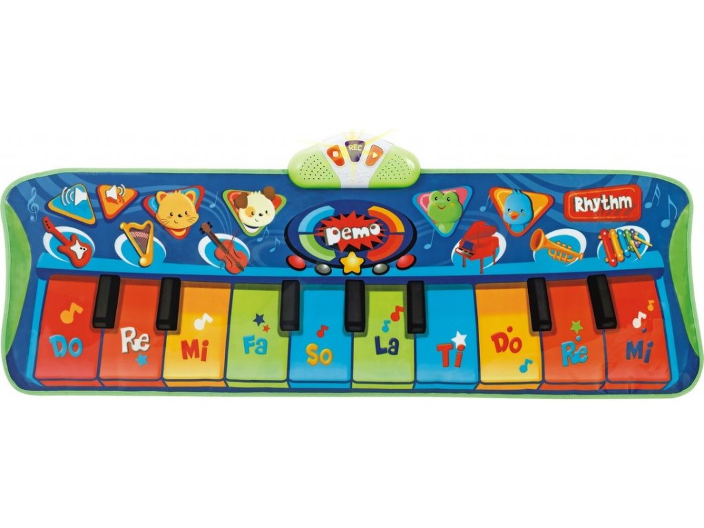 Interaktivní hudební podložka pro tanec zaručí každému dítěti skvělou zábavu se zvuky! Hračka v rozloženém stavu měří až 130 cm na délku a 40 cm na šířku. Je věnována všem miminkům od 2 let. Různé barvy a veselý design vtipných ikonek upoutají pozornost dítěte. Na povrchu podložky najdete: 4 zvířata (kotě, pes, žába, ptáček) 6 hudebních nástrojů (kytara, harfa, viola, klavír, trubka, zvonky) Ovládání hlasitosti (dvě tlačítka pro zvýšení a snížení hlasitosti) Tlačítko "Demo" (představuje možnosti zařízení) Tlačítko "rytmus" (aktivuje jeden ze šesti různých rytmů) 10 zvukových kláves řady Po zapnutí vás uvítá veselá melodie a tři tlačítka na konzole (stop , nahrávání a přehrávání) se postupně rozsvítí - to znamená, že všechny funkce fungují správně. Zábava je velmi jednoduchá a zábavná. Pod tlakem aktivujeme všechna tlačítka a ikony na podložce - lze k tomu využít doslova všechny části těla (záleží pouze na fantazii dítěte). Vytvořenou melodii lze naopak uložit do paměti hračky pomocí tlačítka "nahrát" (lze nahrát omezený počet not a melodie se neukládá trvale - po vypnutí se paměť resetuje) a přehrát opakovaně to díky tlačítku "play" (přehraje pouze poslední uloženou melodii paměti). Co vaše dítě získá: Posloucháním veselých melodií rozvíjí sluch. Rozvíjí hmat. Cvičí skvělé motorické dovednosti. Trénuje motorickou koordinaci. Bude to skvělý čas. Co podložka umí: 6 nástrojů hrajících písničkovou hru vydává zvuky zvířat blikající světla hraje rytmy má ovládání hlasitosti má funkci nahrávání Hračka je kompletně vyrobena z bezpečných materiálů. Věk: 2+ Napájení: 3 baterie AA, nejsou součástí baleníDoplňkové parametry