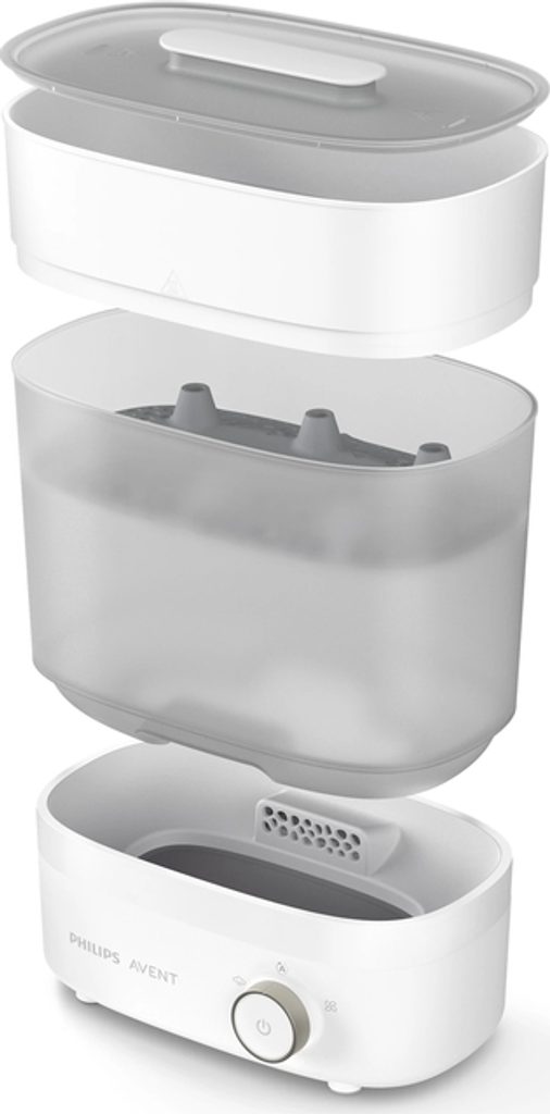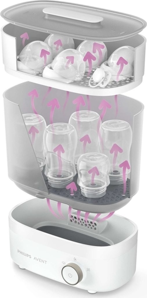 Náš sterilizátor umožňuje sterilizaci, vysušení a uložení. Náš prvotřídní elektrický sterilizátor umí více než jen čistit lahve a ničit bakterie – vysuší a uskladní lahve a příslušenství, takže jsou sterilní až po dobu 24 hodin.