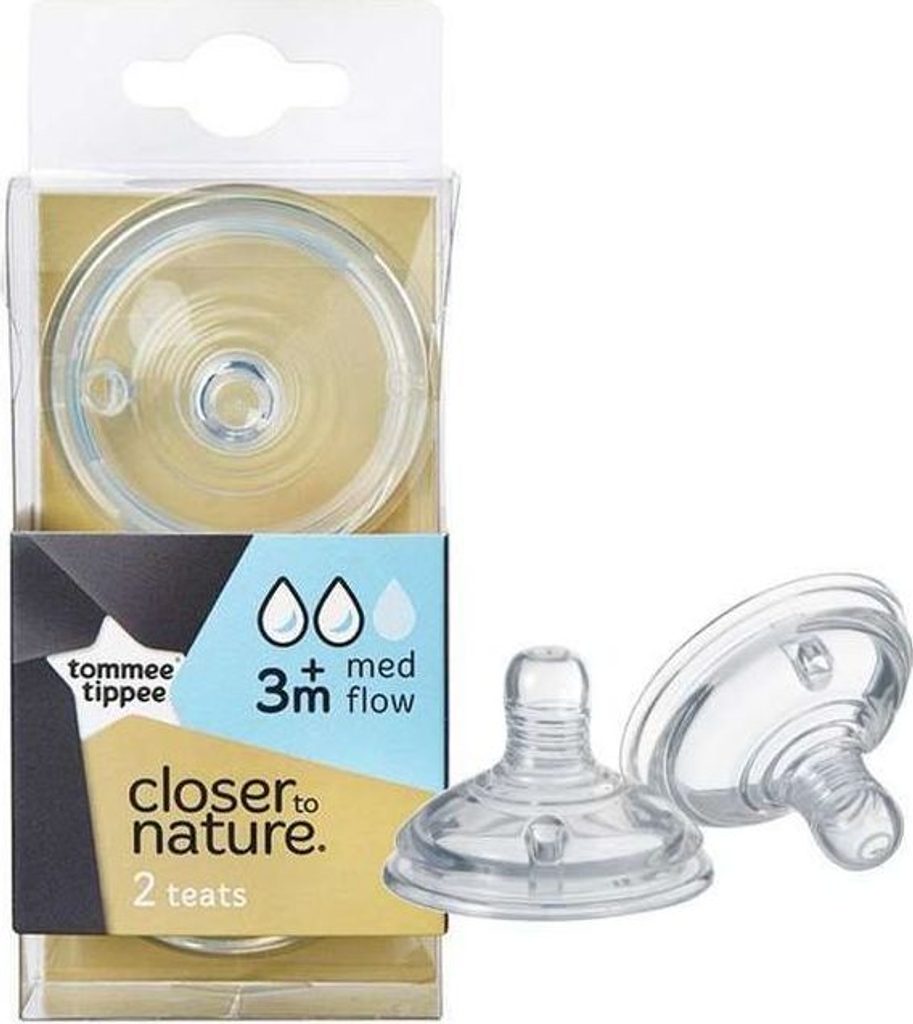 Náhradní savička se středním průtokem Tommee Tippee Closer To Nature. Navržena tak, aby svým tvarem i funkcí co nejvíce připomínala mateřský prs. Ventilační otvor na okraji savičky umožňuje únik vzduchu z lahvičky a zabraňuje hromadění vzduchu v bříšku a následné kolice.