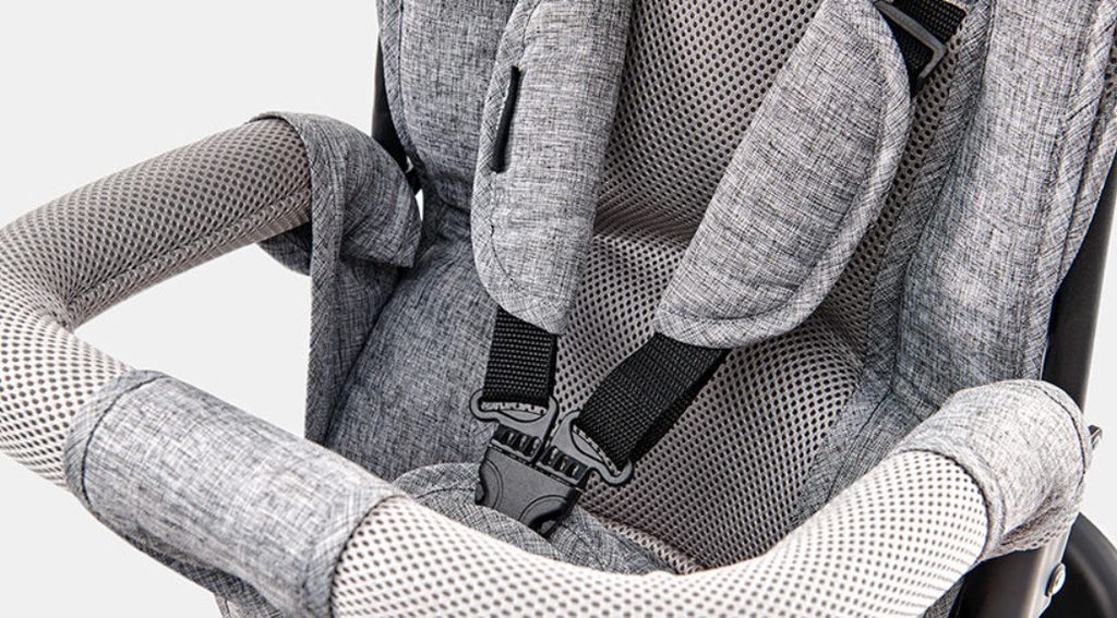 Nastavitelné, 3-bodové pásy  - mají vložky s měkkou výplní a měkký kryt přezky, který nezpůsobuje dítěti nepohodlí při jízdě.