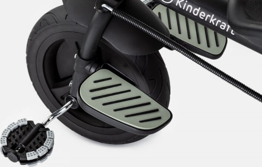 Šlapací kolo – umožňuje dítěti samostatně šlapat, přičemž rodič má jízdu plně pod kontrolou. Tato funkce chrání nohy dítěte před nárazy.