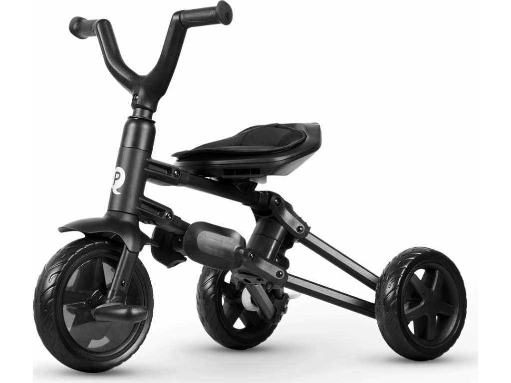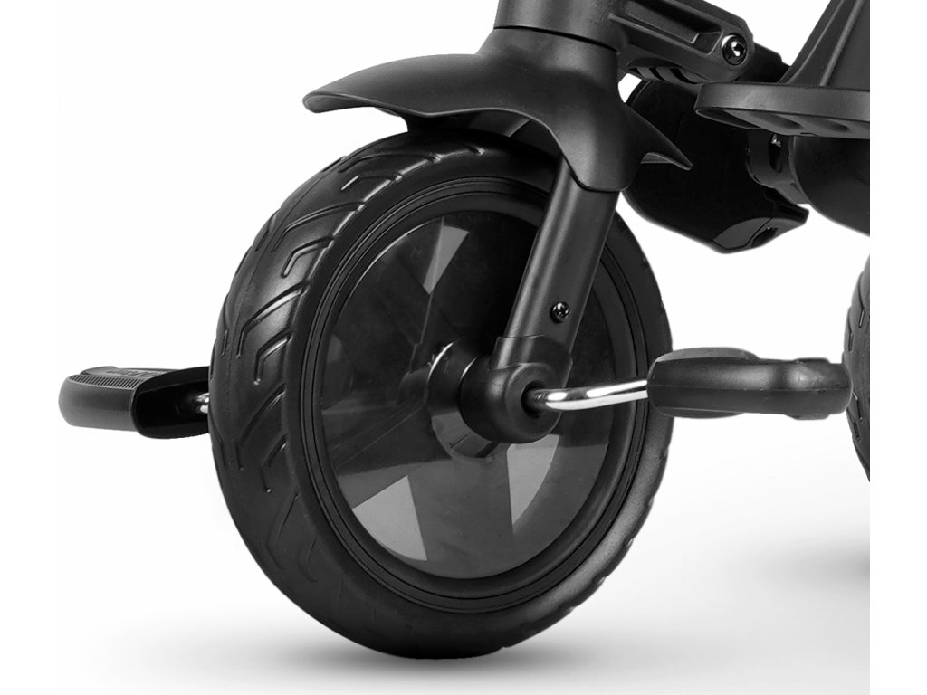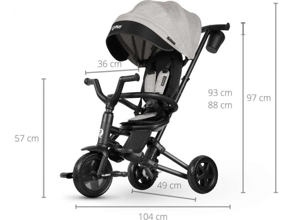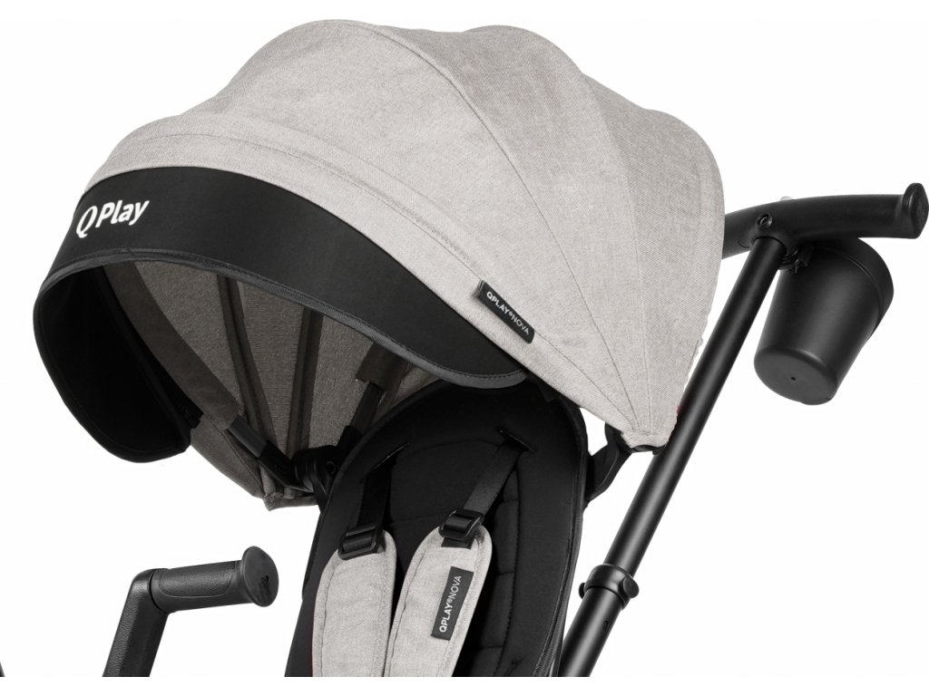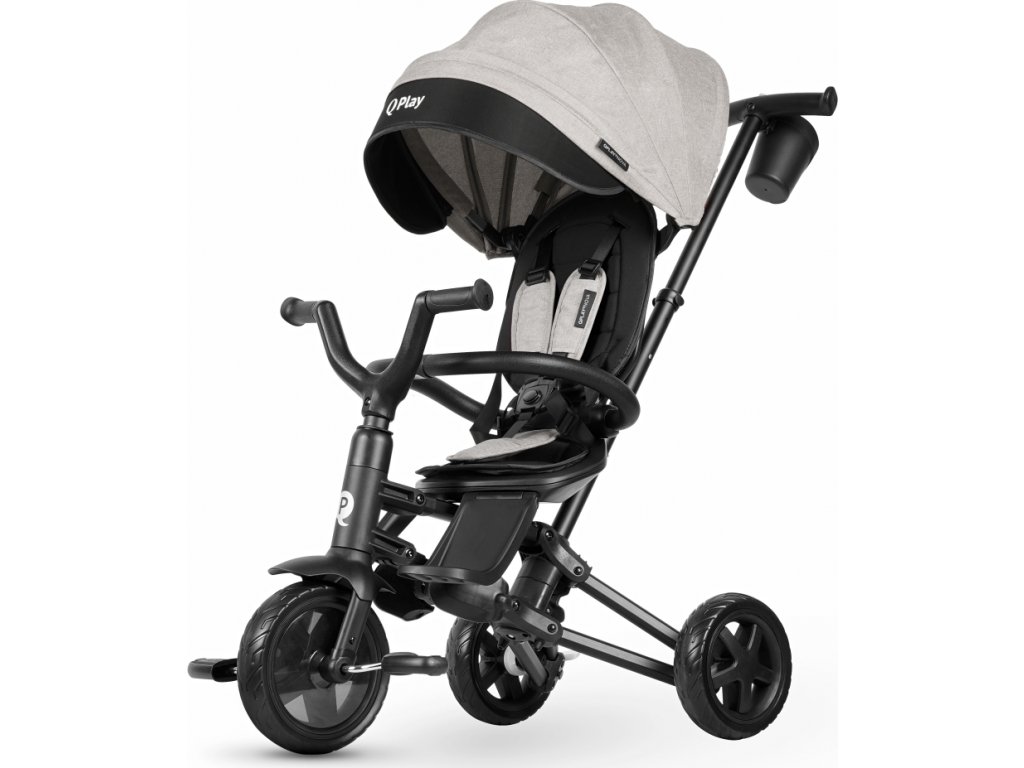 Tato tříkolka jistě uspokojí i ten nejnáročnější vkus, QPLAY využívá nejnovější trendy v barvách a pro zdůraznění designu jsou na kapotě a bezpečnostních pásech použity vložky s logem a jménem. To vše pro zvýšení jeho atraktivity. Tichá EVA kola zajišťují jízdní komfort. Volnoběžné kolo a volné řízení dávají rodiči kontrolu, aby klidně sledoval určenou trasu. Kombinace hliníkové konstrukce a prvků z vysoce kvalitních materiálů zaručuje odolnost.