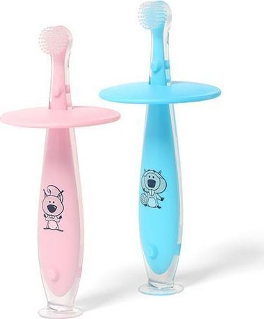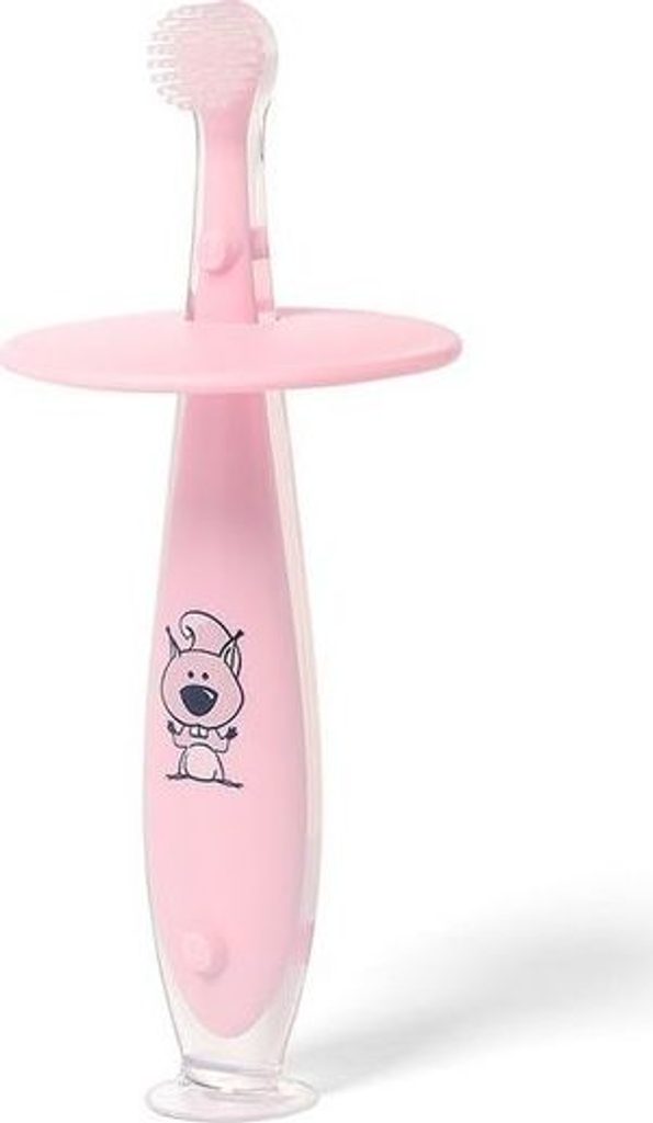 Jemný silikonový zubní kartáček se zarážkou, která zabraňuje jeho vložení příliš hluboko do úst. Je určen pro každodenní ústní hygienu a hodí se i pro masáž dásní u dětí, které ještě nemají zoubky. Díky veselému designu se čištění zubů stane zábavou.